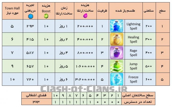 جزئیات ساخت و ارتقا کارخانه طلسم Spell Factory در کلش اف کلنز